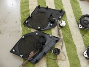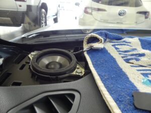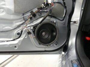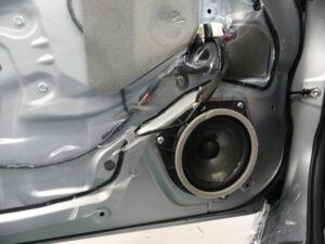 ドア内張りを外し作業を進めます。純正スピーカーを外し取付ます。