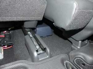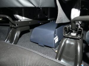 パワードウーファーはシートとシートの間に取付配線しました。パイオニアカロッツェリアのTS-WX010Aです。